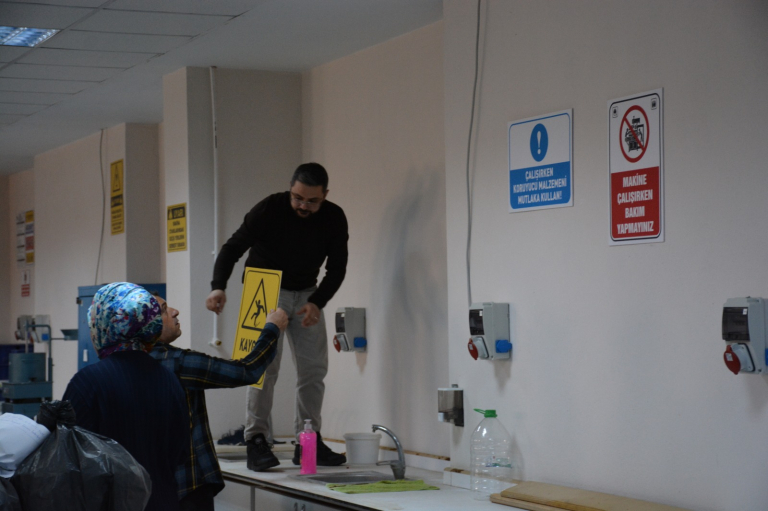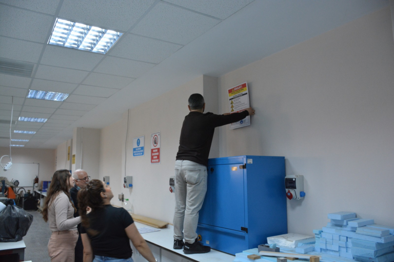 Çalışma kapsamında makinelere ait potansiyel riskler değerlendirilmiş, uyarı, yasaklama, emredici ve acil durum levhaları doğru ve görünür noktalara yerleştirilmiştir. Bu uygulama sayesinde öğrenciler teorik bilgilerini sahada pekiştirirken, atölyede güvenli çalışma kültürünün güçlenmesine de katkı sağlamıştır.