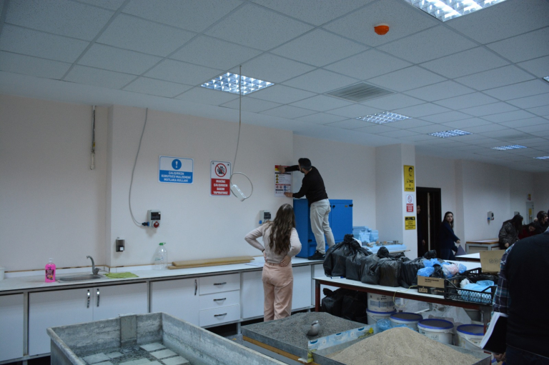 İş Sağlığı ve Güvenliği Programı 2. sınıf öğrencileri, Uyarı İşaretleri ve Levha Standartları dersi kapsamında anlamlı bir uygulama gerçekleştirdi. Öğr. Gör. Serhat ŞENGÜR rehberliğinde yürütülen etkinlikte öğrenciler, İnşaat Teknolojisi Bölümü atölyesinde bulunan makine ve cihazları inceleyerek uygun sağlık ve güvenlik işaretlerini belirleyip standartlara uygun şekilde astılar.