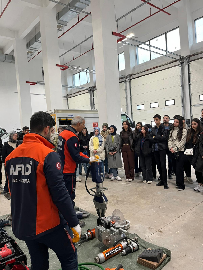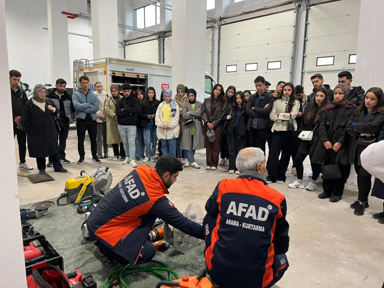 İş Sağlığı ve Güvenliği Programı 2. sınıf öğrencilerimiz “Arama ve Kurtarma Bilgisi” dersi kapsamında AFAD Müdürlüğünde uygulamalı eğitim alma fırsatı buldu. Gerçekleştirilen eğitimde afet ve acil durumlara yönelik önemli bilgiler edinen öğrencilere katkılarından dolayı AFAD Eğitim ve Şube Müdürü Güçlü DEMİR’e teşekkür ederiz.