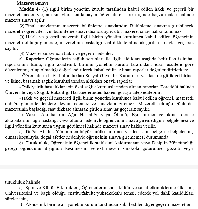 Mazeret Sınavlarına son başvuru tarihi : 5 Aralık 2025 Cuma